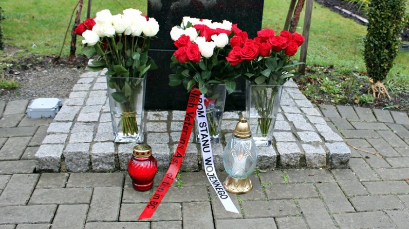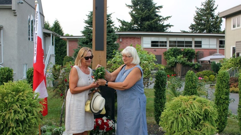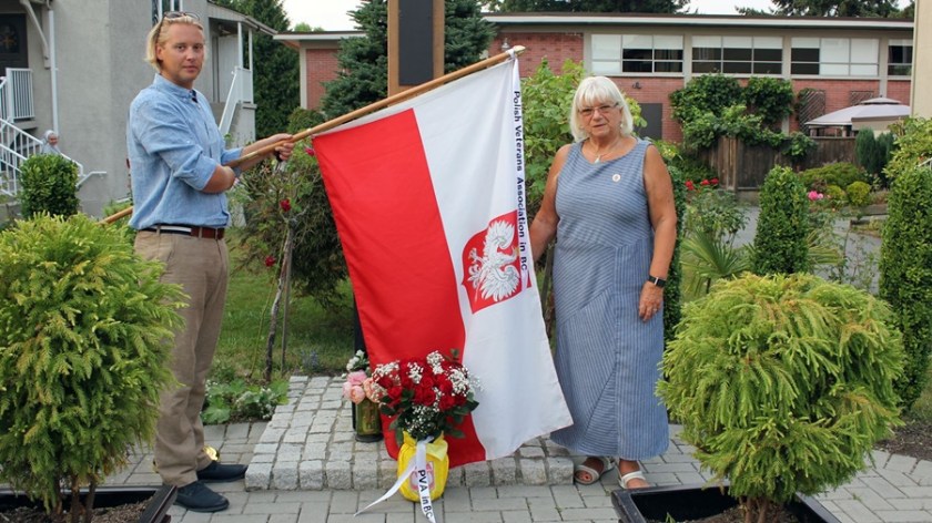 Kwiaty złożyli: Konsul Generalny RP w Vancouver Andrzej E. Mańkowski, Prezes KPK BC Michael Dembek i Prezes PVA in BC Wojciech Lenartowicz.