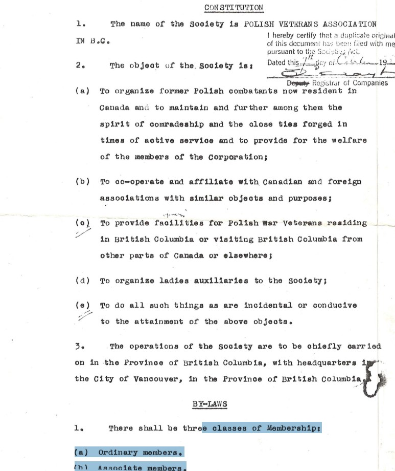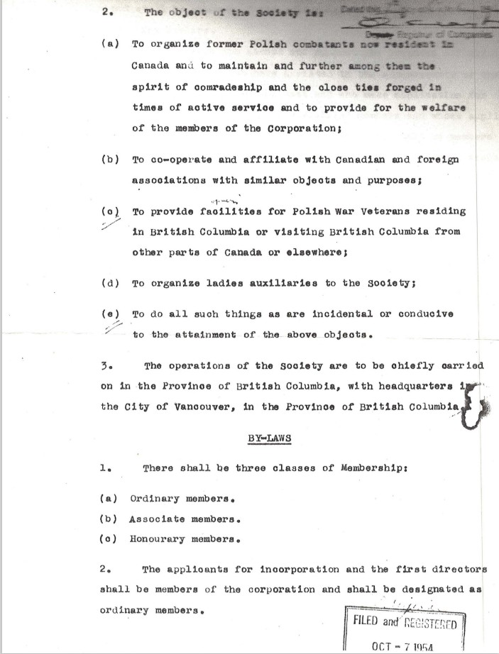 Organizacja Polish Veterans Association in BC została oficjalnie utworzona 7 października 1954.