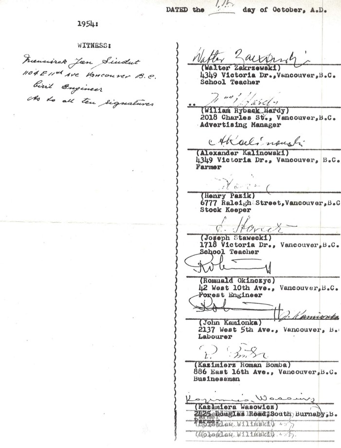 Po zakończeniu Drugiej Wojny Światowej, w Brytyjskiej Kolumbii osiedliła się grupa polskich żołnierzy, którzy w obliczu okupacji sowieckiej w Polsce i niemożności pozostania w Anglii zdecydowali się na emigracje do Kanady. Jednakże warunkiem pozostania w Kanadzie było podjęcie dwuletniego kontraktu na prace rolnicze lub w kopalni. Po wygaśnięciu kontraktów większość byłych żołnierzy polskich pracujących w Brytyjskiej Kolumbii osiedliła się w Vancouver.
